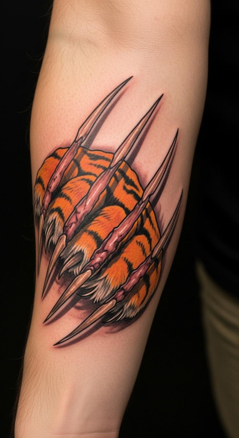 The tiger claw marks tattoo symbolizes strength, independence, and the fierce determination to break free from constraints.