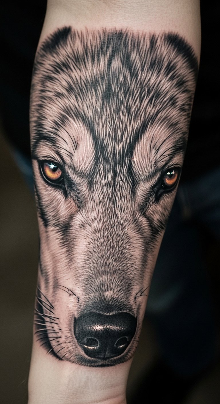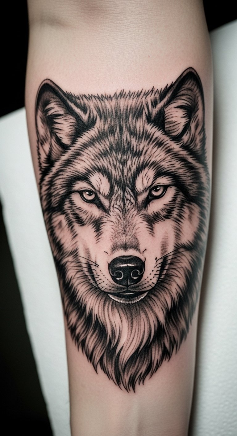 This tattoo symbolizes strength, loyalty, and the untamed spirit of the wolf, embodying the wearer’s connection to nature and their personal journey. Placed on the forearm, it serves as a daily reminder of resilience and freedom, allowing the individual to express their wild spirit boldly and authentically in everyday life. The visible location ensures that the tattoo is not only a personal emblem but also a striking piece of art that can inspire others.