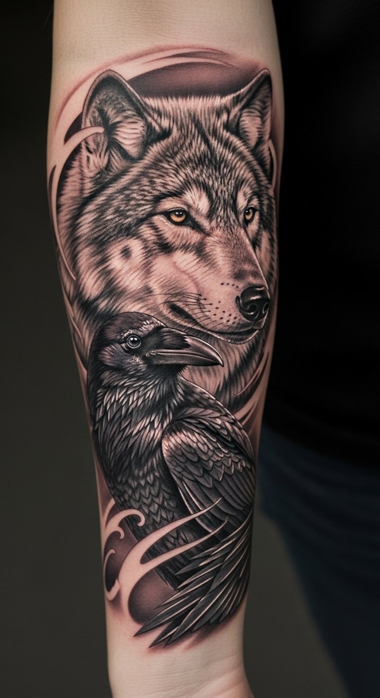 Wolf and Raven Tattoos: A Balance of Intellect and Instinct