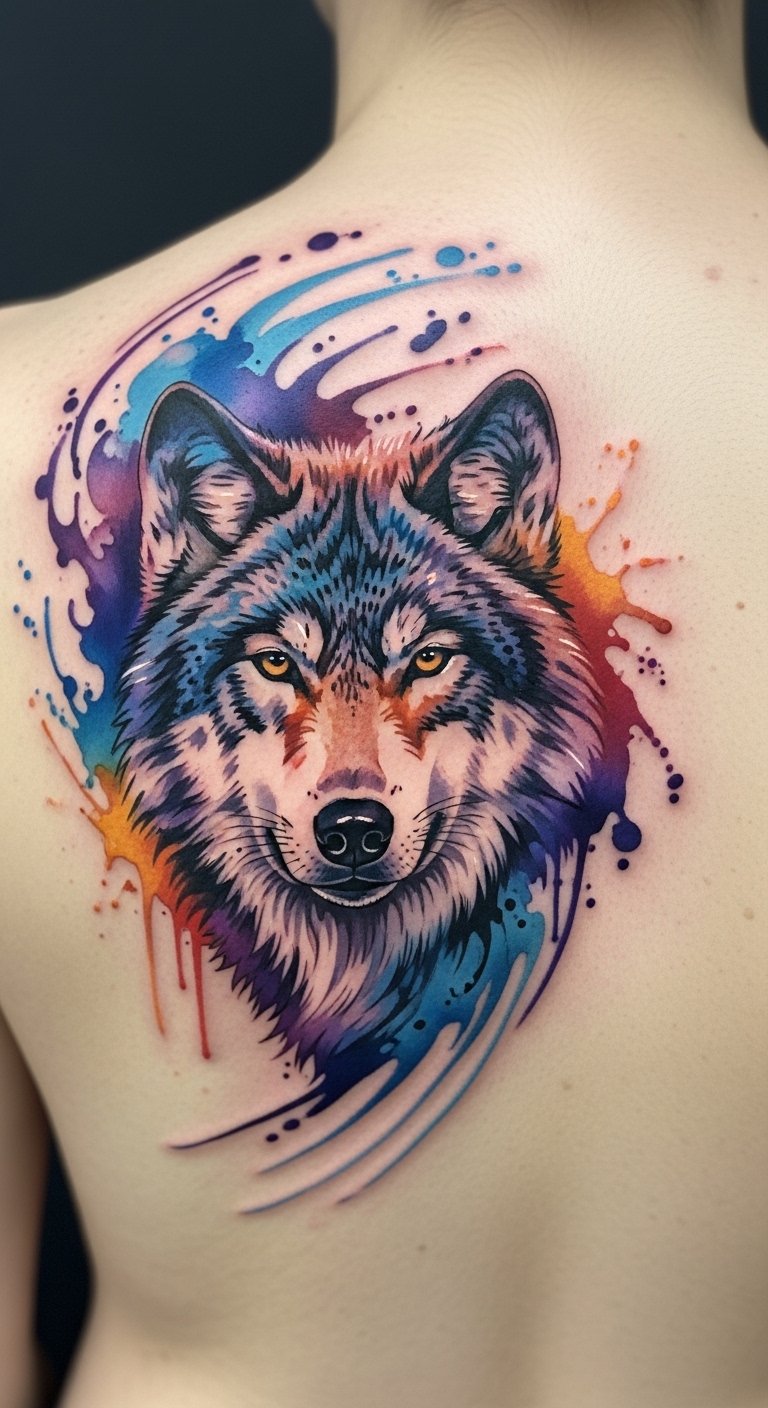 Watercolor Wolf Tattoos: Blending Artistic Vibrancy
