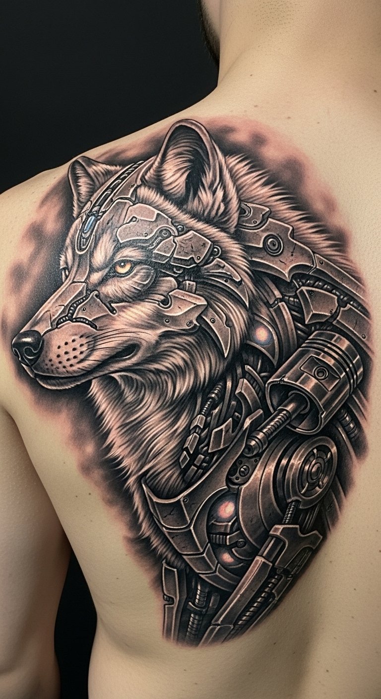 Biomechanical Wolf Tattoos: Futuristic Fusion