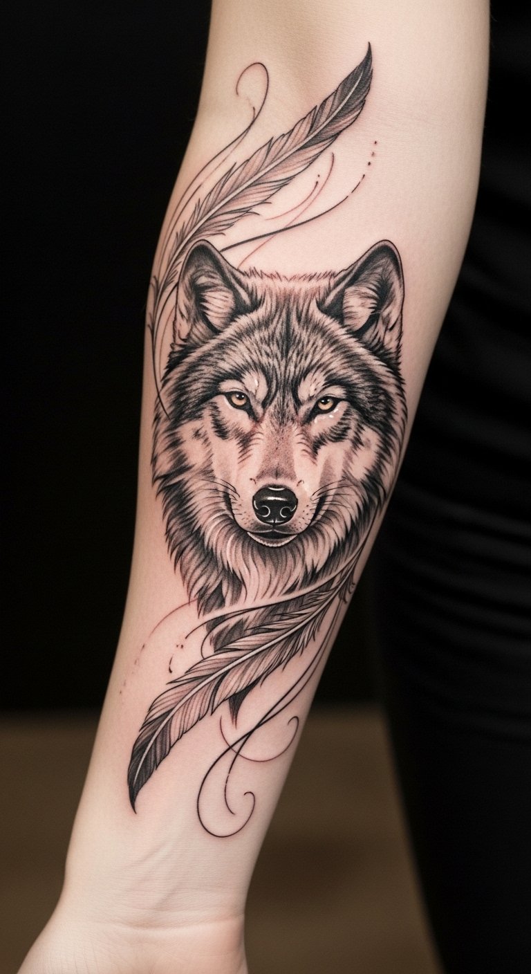 Wolf and Feather Tattoos: Emphasizing Freedom and Spirit