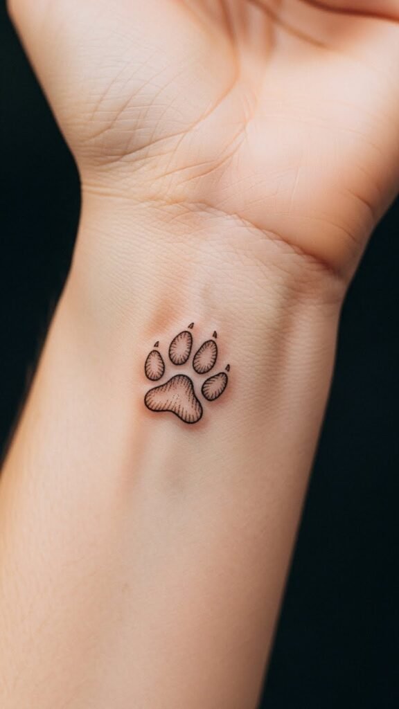 The paw print tattoo on the wrist serves as a constant reminder of the love and loyalty shared with a furry companion. This placement keeps the memory close, allowing the wearer to feel their presence throughout the day.