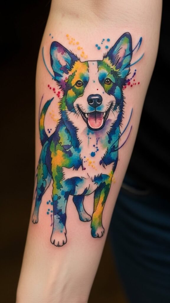 This tattoo symbolizes the joyful spirit and unique personality of the beloved furry friend, serving as a constant reminder of the happiness they bring.
