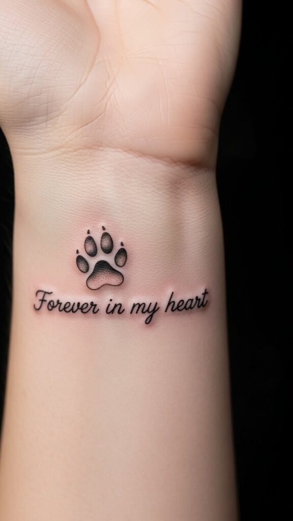 Placed on the inner wrist, it’s easily visible, allowing for a constant connection to the memories shared. The paw print symbolizes loyalty and the special bond between pet and owner, while the heartfelt quote reinforces the enduring love that remains even after they’re gone.
