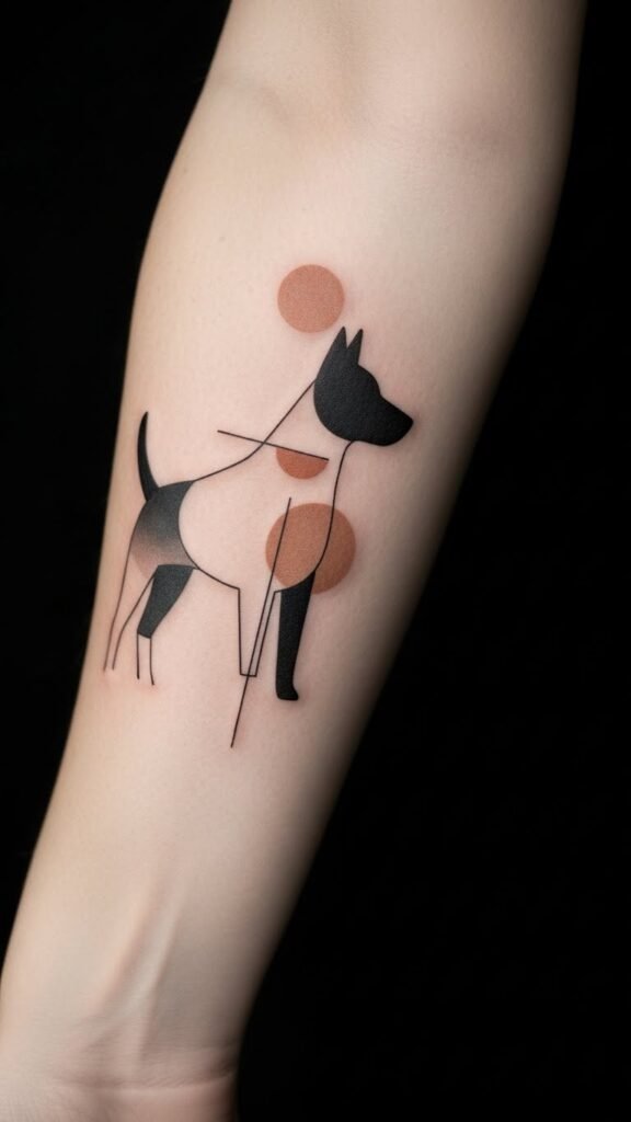 This tattoo design symbolizes the deep bond shared with a beloved dog, using abstract shapes to evoke memories and emotions.