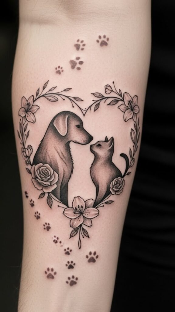 This tattoo design symbolizes the deep bond between you and your furry companion, celebrating the joy and love they brought into your life.
