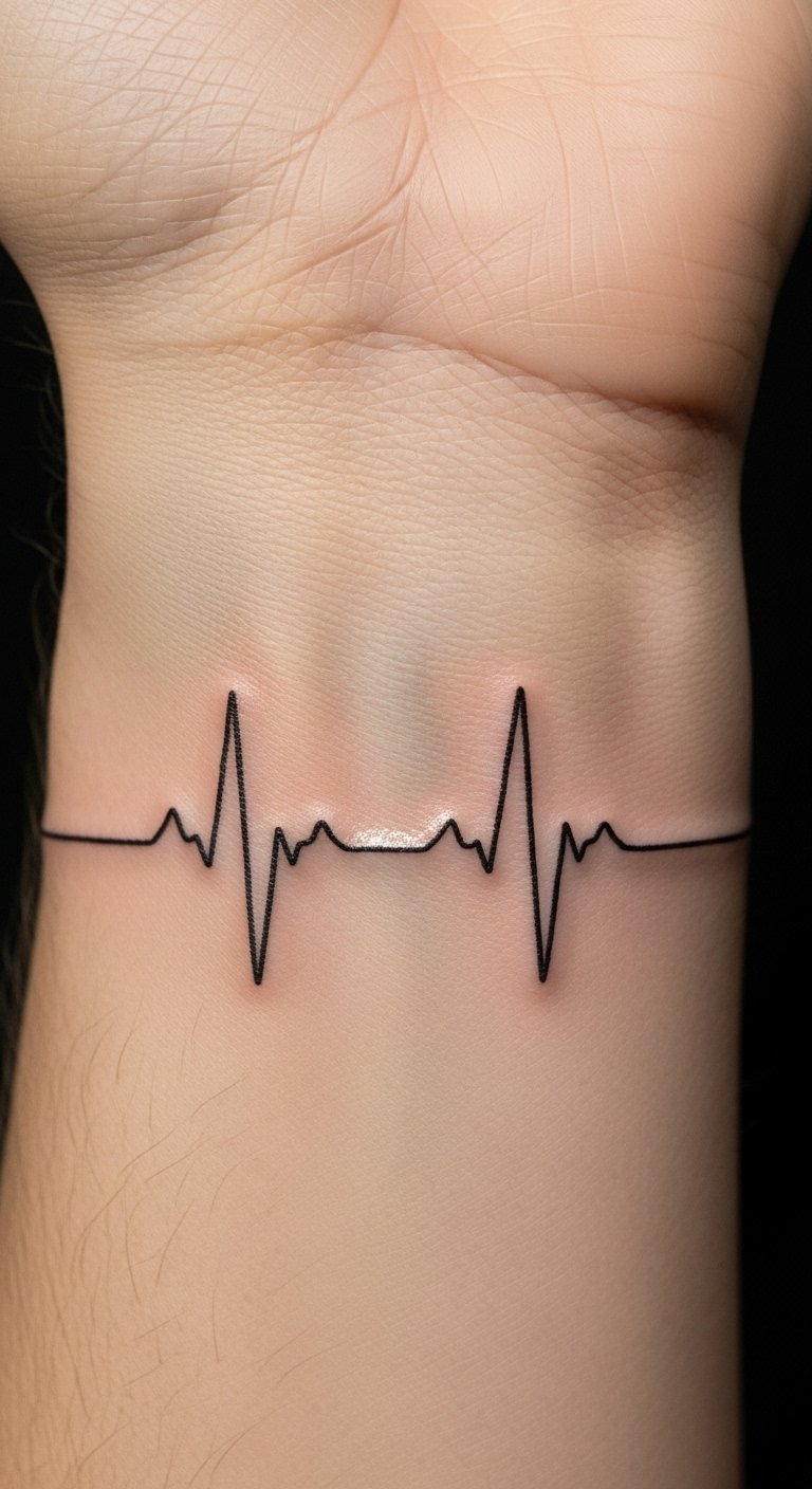 This abstract lifeline tattoo serves as a poignant tribute to a lost child, embodying the deep emotional ties and the life that could have been.