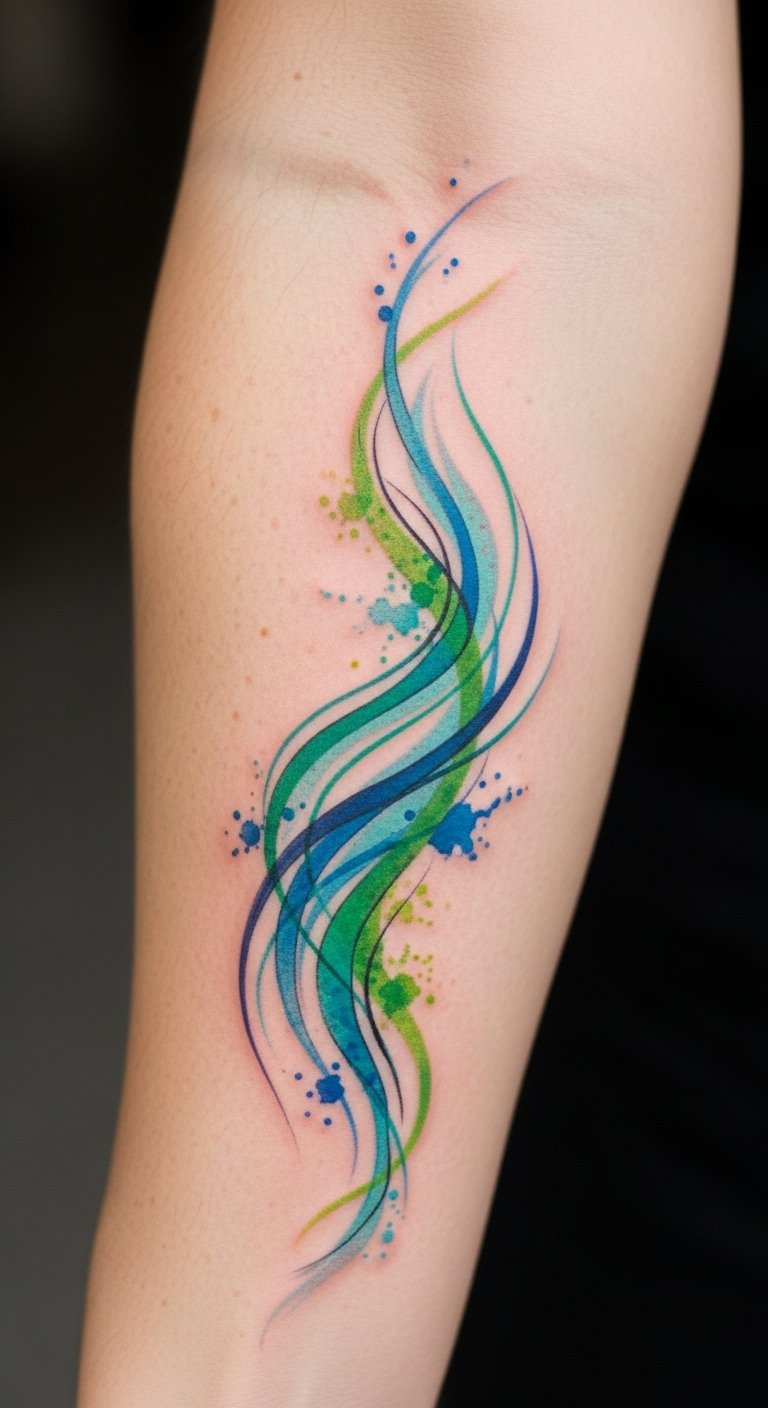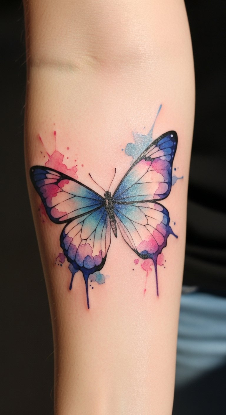 The watercolor effect enhances the tattoo’s uniqueness, encouraging personal interpretation and emotional expression.