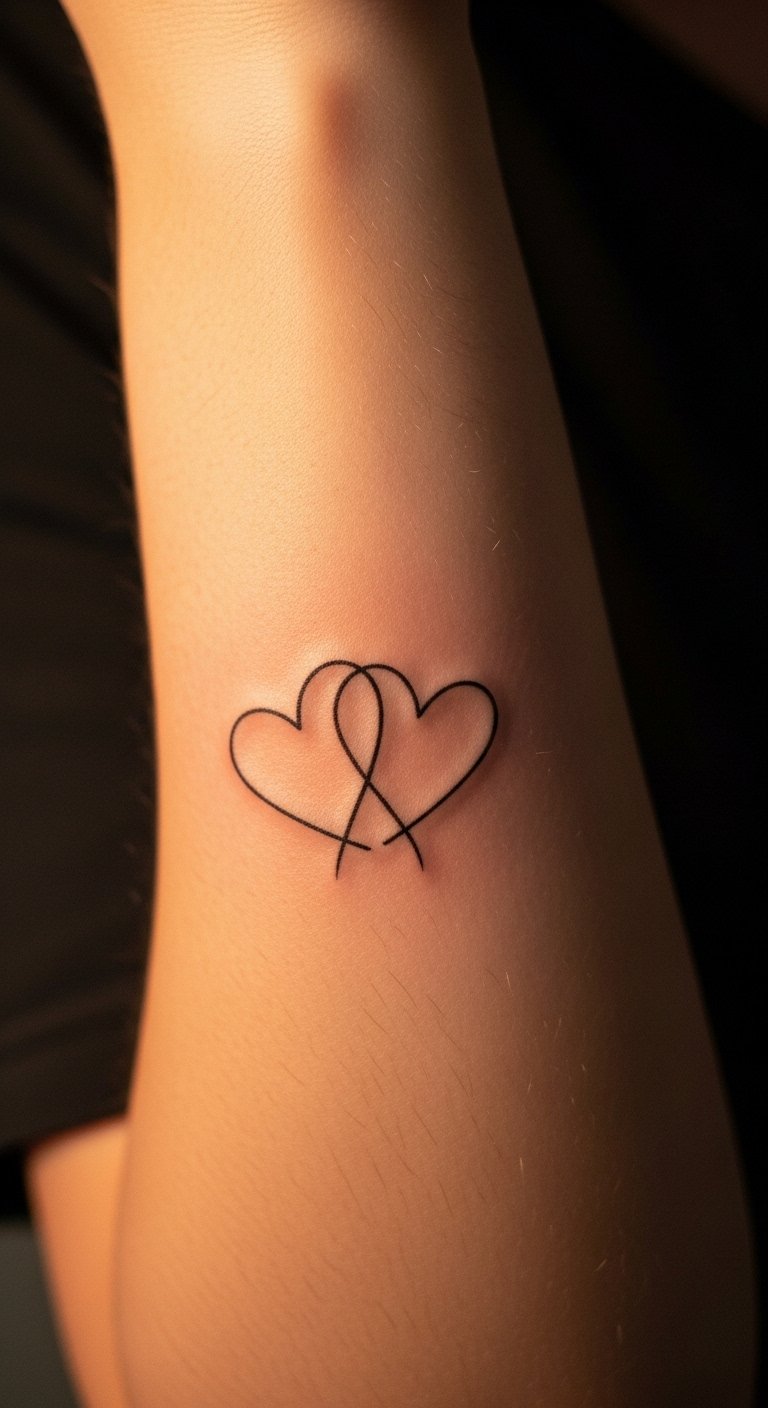 The double heart tattoo symbolizes the deep love and connection shared with a cherished child, embodying both love and loss.