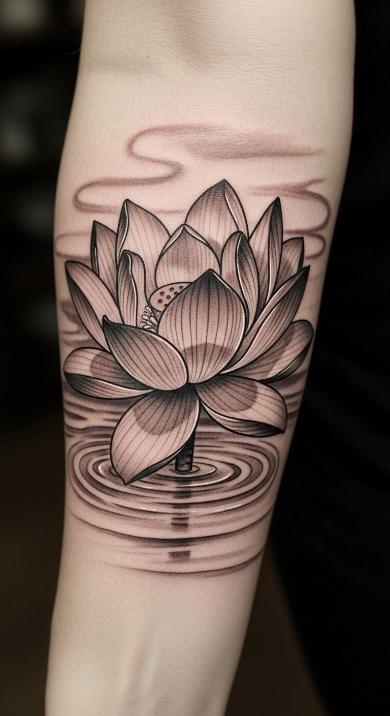 The lotus flower tattoo serves as a poignant reminder of rebirth and resilience, perfectly suited for those navigating the emotional journey of miscarriage.