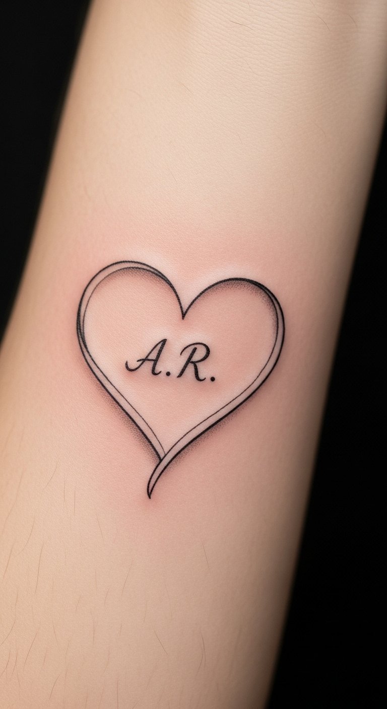 Positioned on the inner forearm, it remains visible, allowing the wearer to carry this personal reminder close. The heart not only signifies love but also encapsulates the unique identity of the baby through their initials.