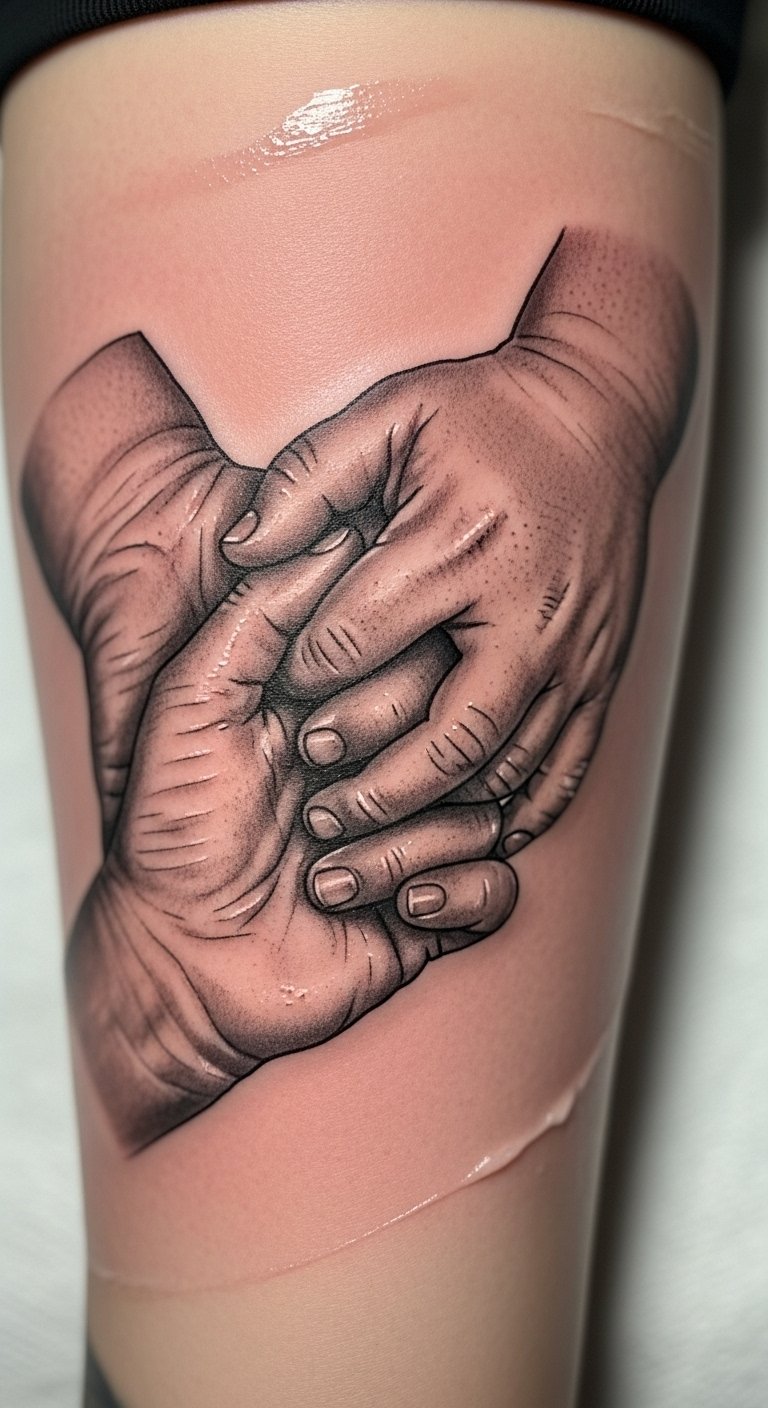 This tattoo symbolizes the unbreakable bond between parent and child, a representation of love that transcends time.