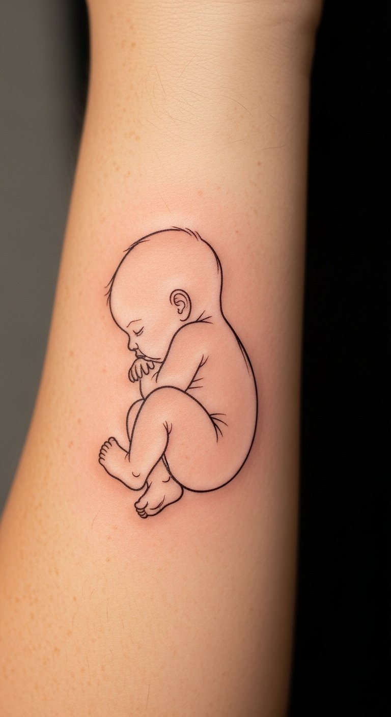 Placed on the forearm, this tattoo is easily visible, allowing for a constant connection to the spirit of the child, symbolizing both the weight of loss and the lightness of cherished memories.