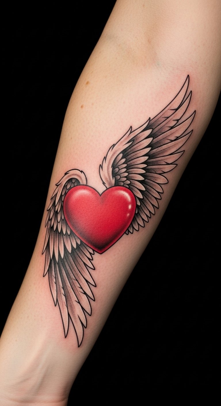 This heart with wings tattoo symbolizes the enduring love and freedom of a cherished spirit lost too soon.