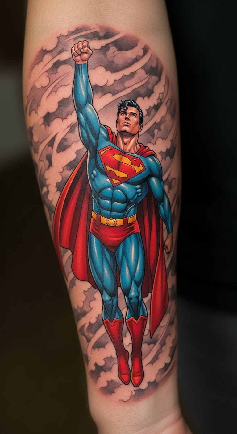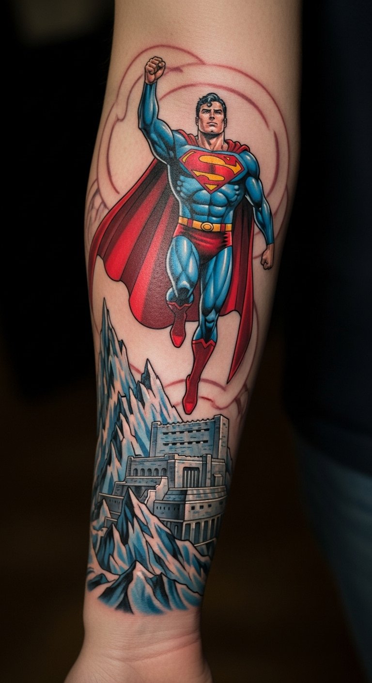 Dynamic Superman Scene Tattoo