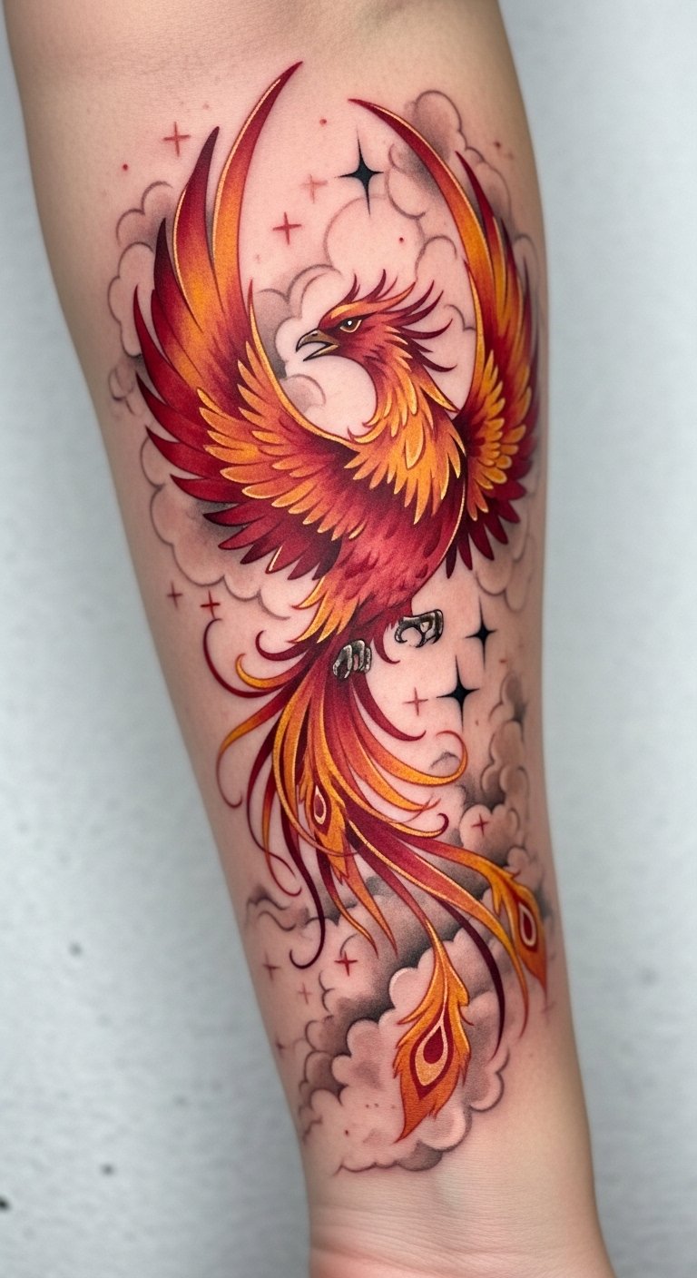 This tattoo symbolizes the vibrant energy of transformation and the courage to embrace the unknown.
