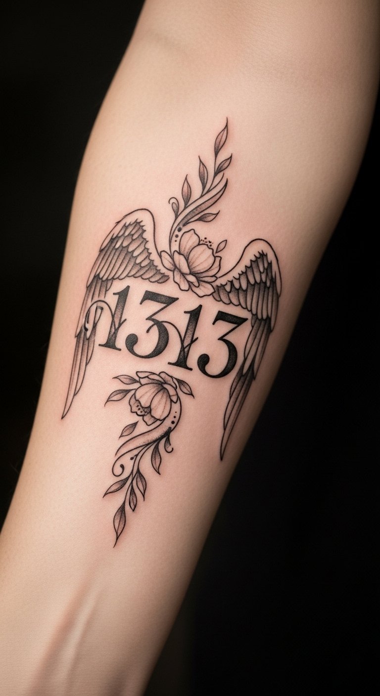 This tattoo symbolizes the journey of embracing personal freedom and celebrating individuality. The number 1313, often associated with spiritual awakening and personal growth, serves as a reminder to live authentically.