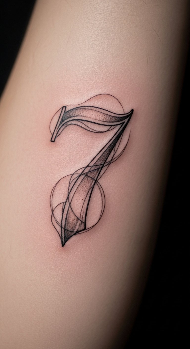 This tattoo symbolizes the power of duality and balance, embodying the essence of harmony in one’s life. The number 2 represents partnerships and the ability to manifest dreams, while the flowing lines evoke a sense of freedom and fluidity in creating one’s reality.