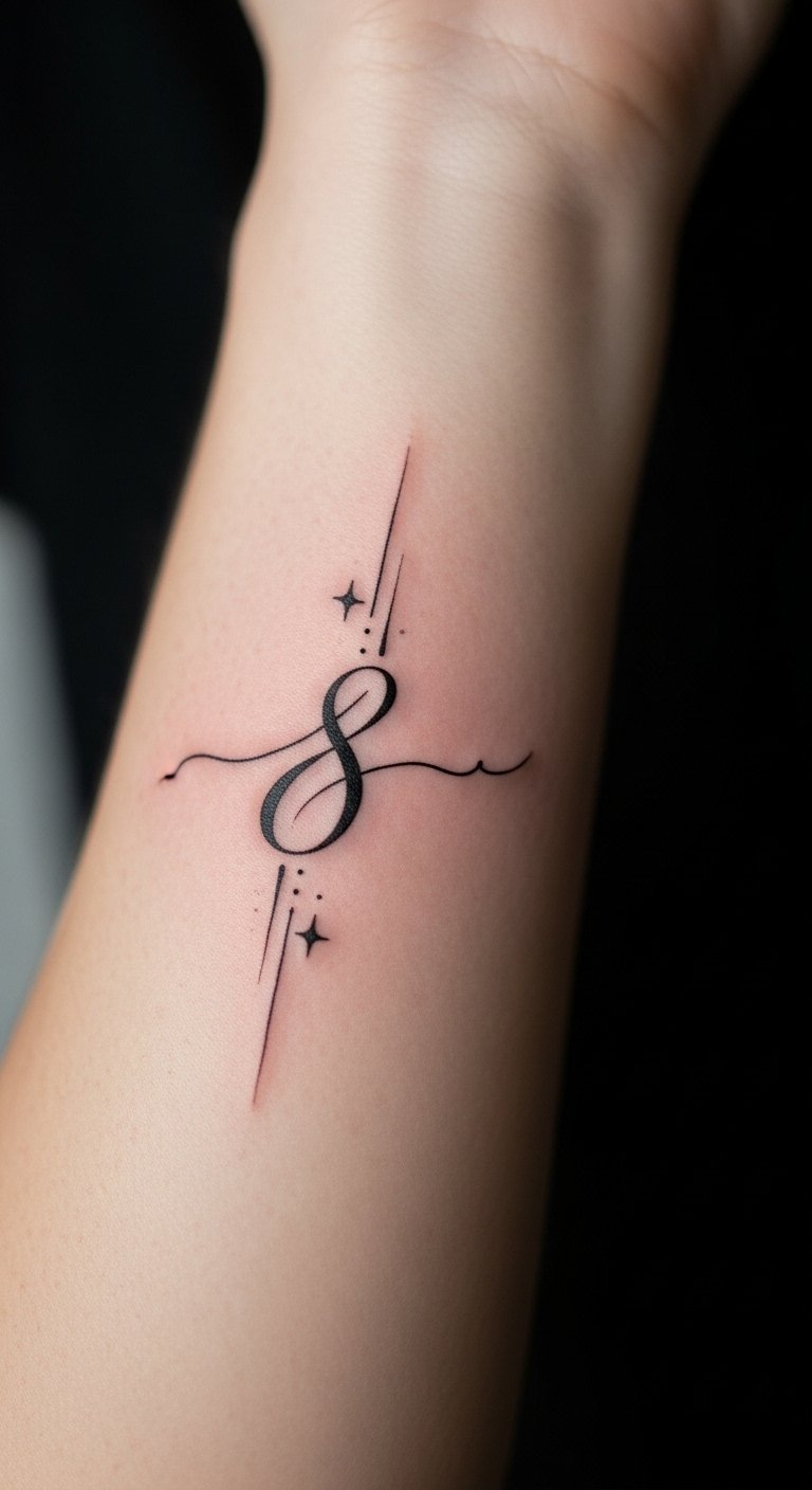 The placement on the inner forearm allows for visibility and personal reflection, symbolizing the journey of self-discovery and the embrace of infinite potential.