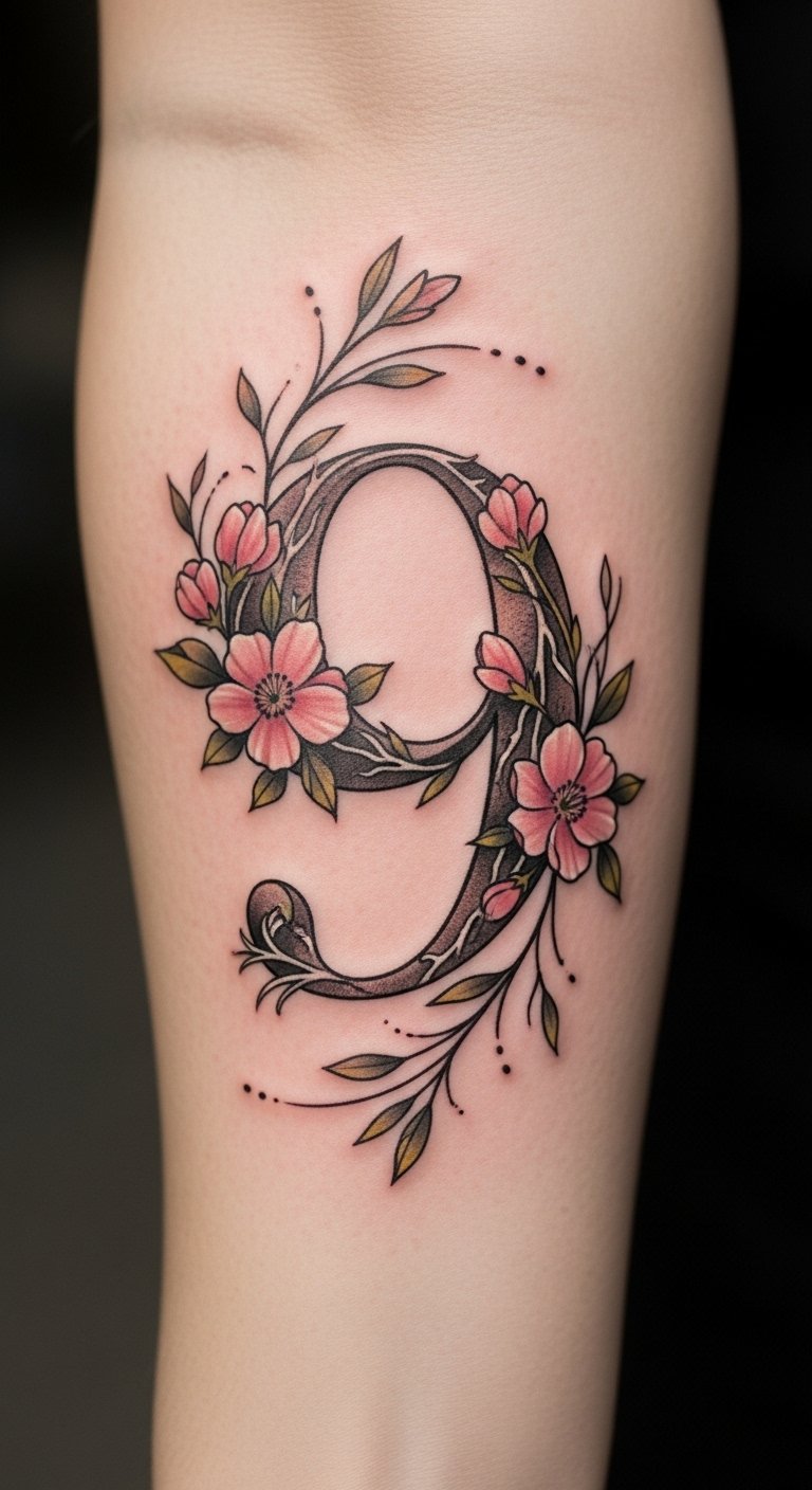 This tattoo symbolizes the profound transformation and renewal associated with the energy of the number 9.