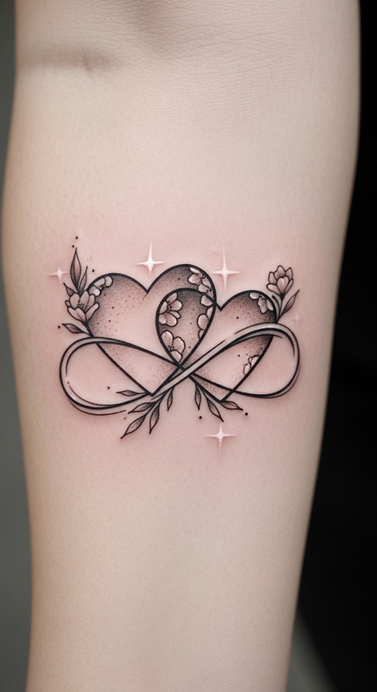 Placed on the forearm, it serves as a daily reminder to cultivate empathy and understanding in your bonds. The interlocking hearts symbolize love and unity, while the infinity symbol represents the endless potential for meaningful connections.