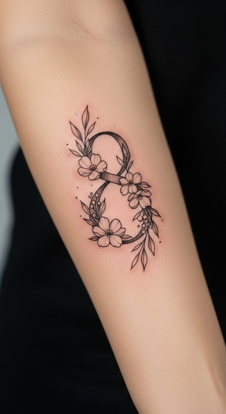 This tattoo embodies the essence of the number eight, representing the flow of positivity and the joy of manifestation.
