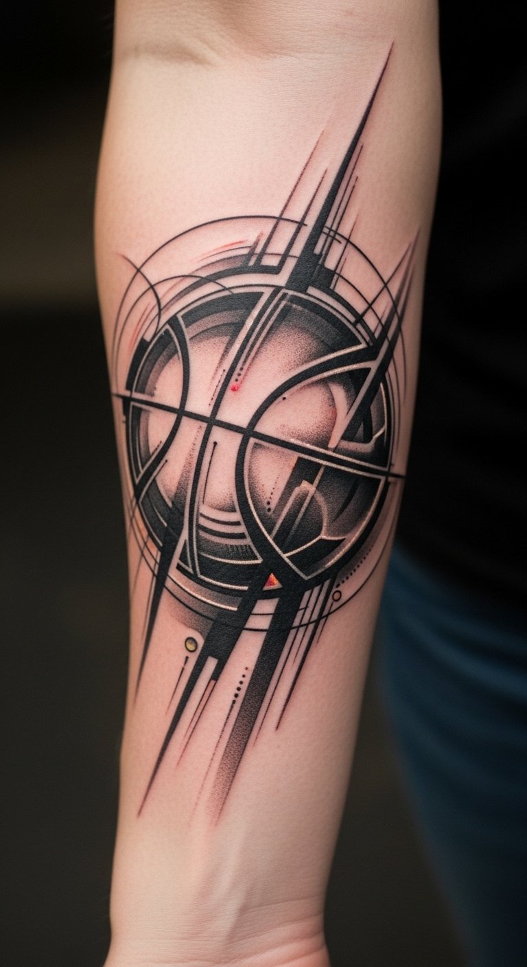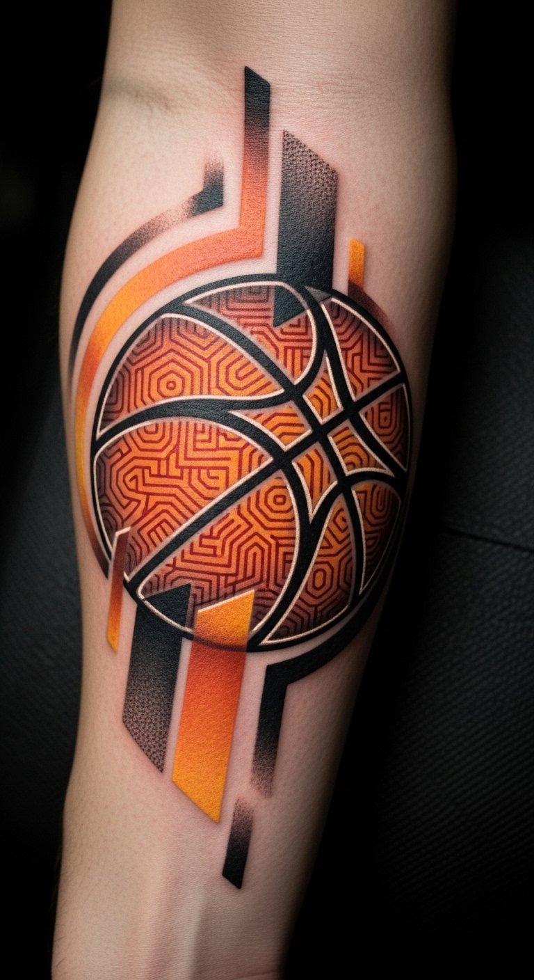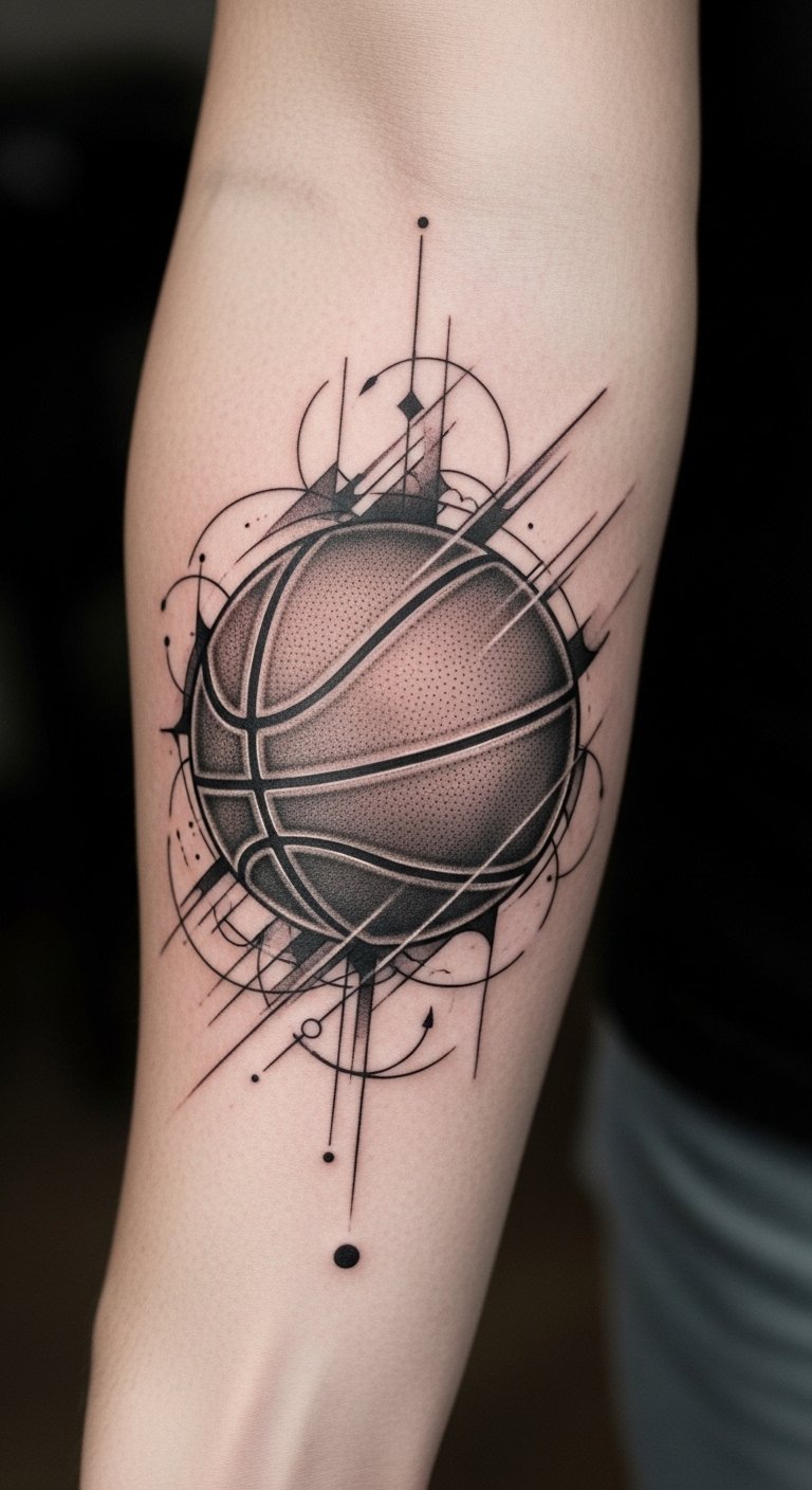This tattoo symbolizes the fluidity and precision of basketball, embodying the sport’s rhythm and energy through its abstract shapes.