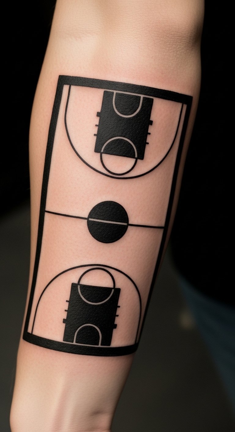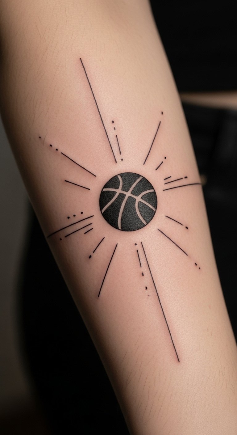 This tattoo symbolizes the essential elements of basketball—movement and passion—encapsulated in a clean, understated design.