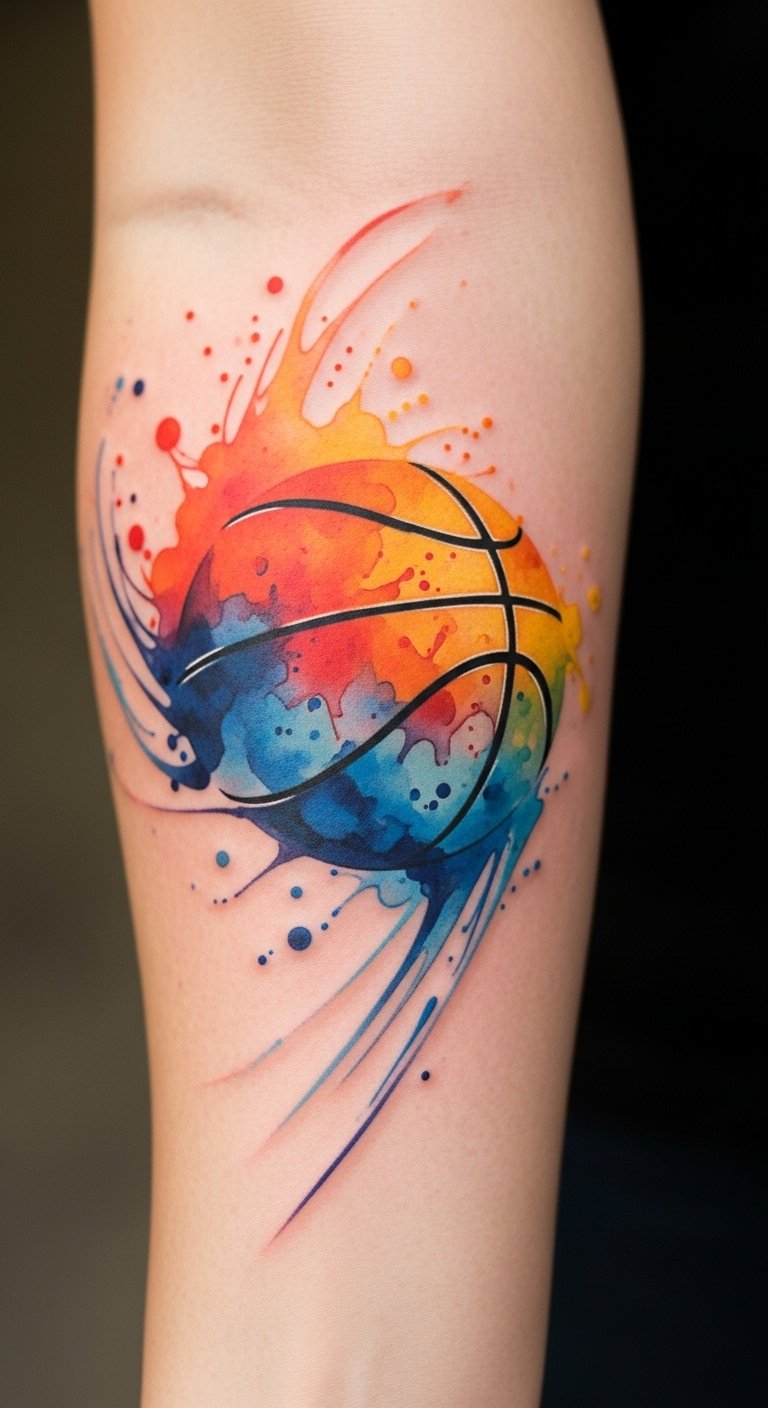 Watercolor Basketball Tattoos