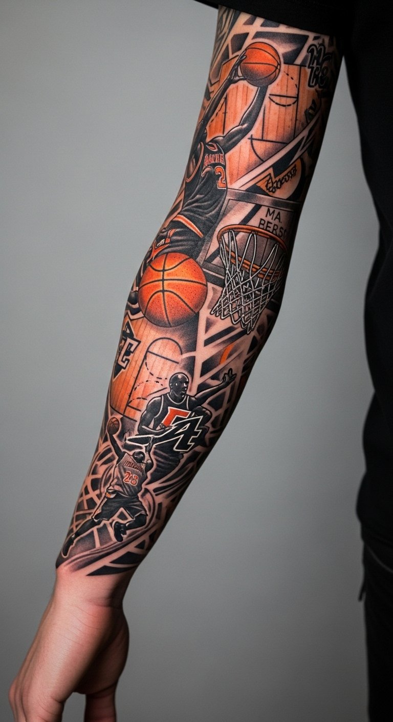 Basketball-Themed Sleeve Tattoos