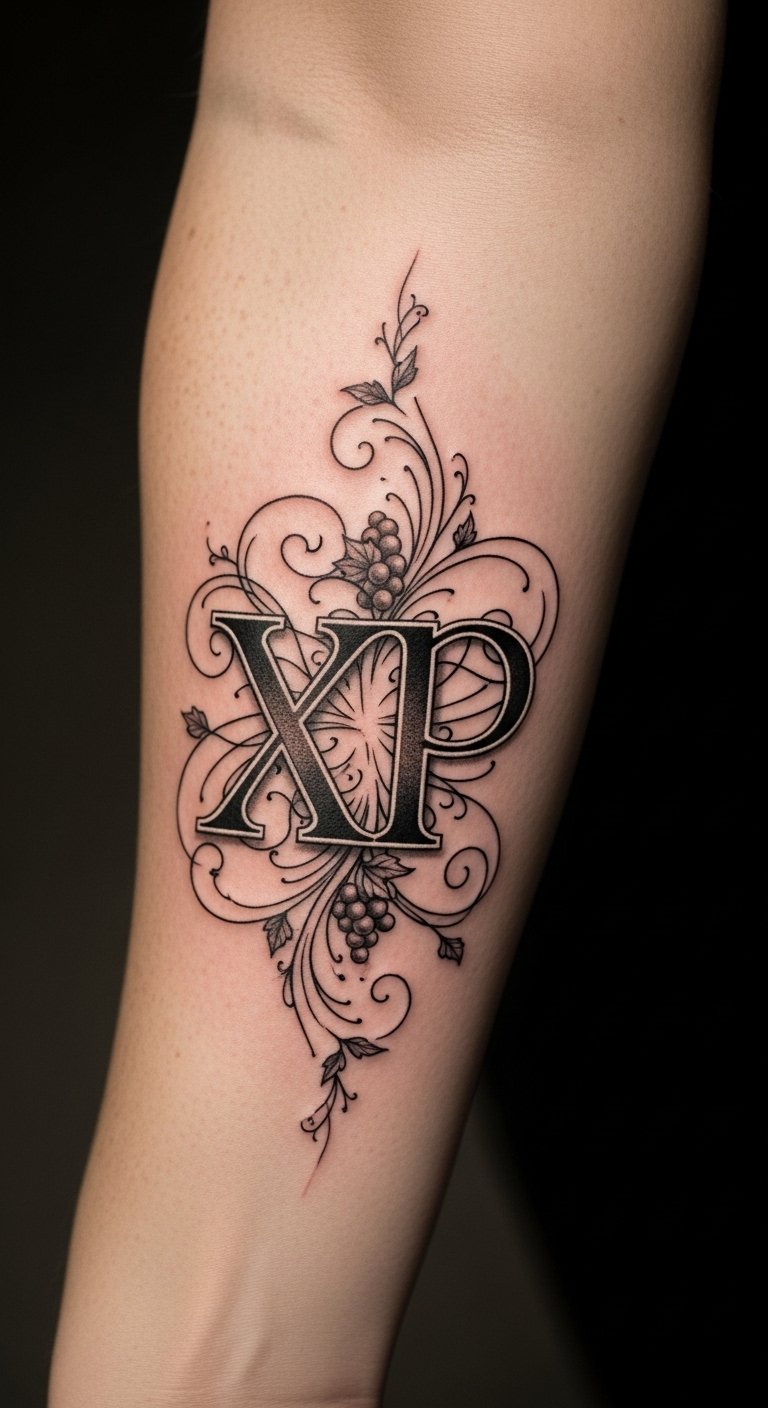The Chi Rho tattoo on the forearm serves as a daily reminder of one’s faith and connection to Christ. Its prominent placement allows for visibility, inviting conversations about spirituality and devotion.