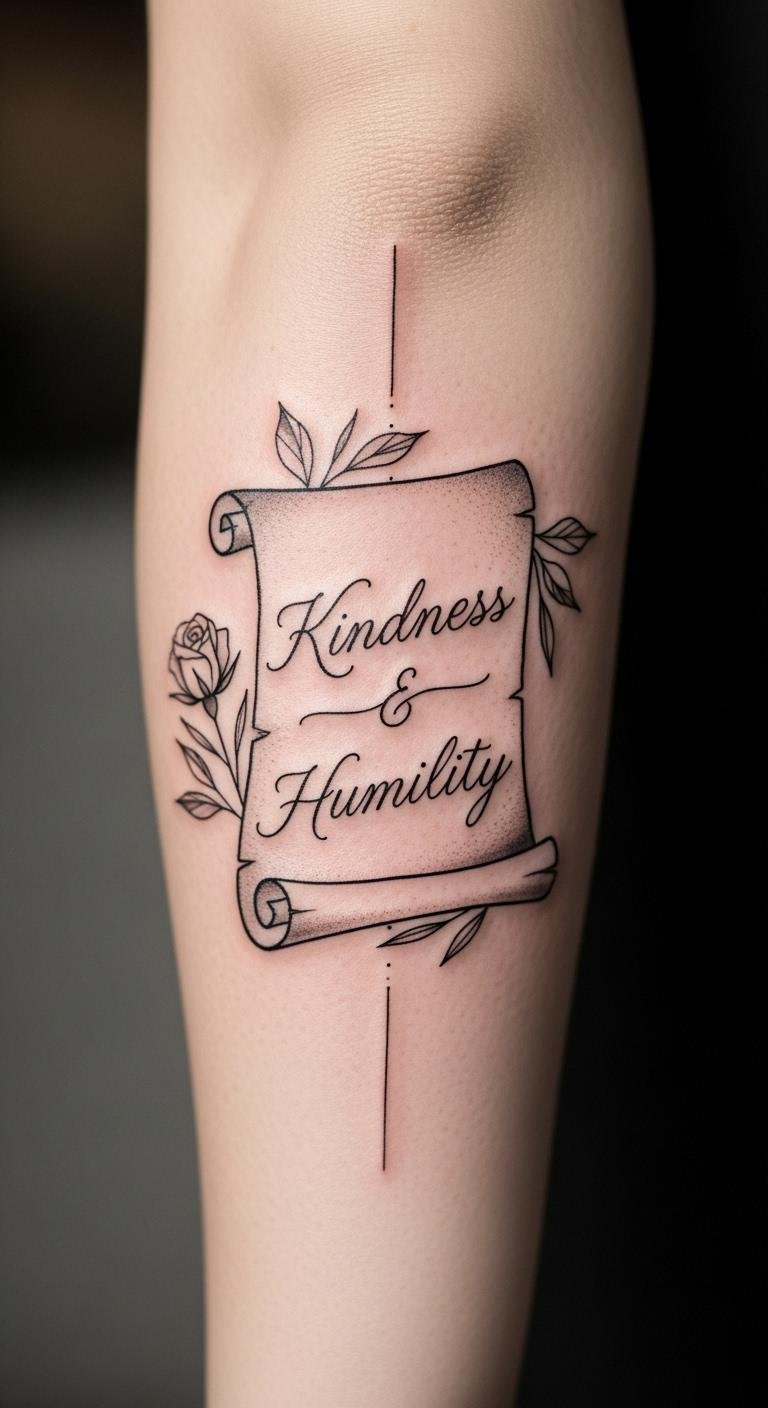 This tattoo design embodies the core virtues of kindness and humility from Pirkei Avot, reminding the wearer of their personal journey towards moral conduct and integrity.