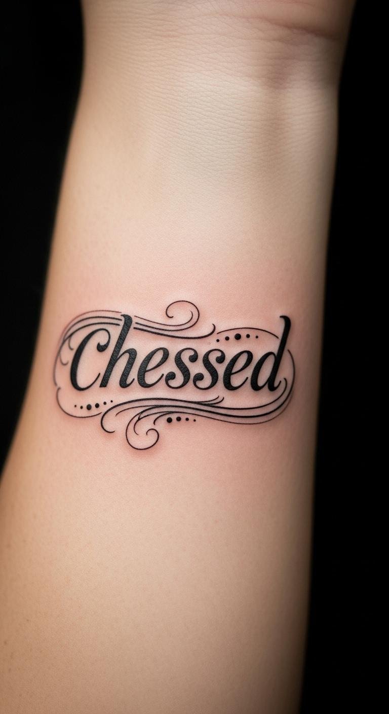 This tattoo of “Chessed” is a powerful symbol of kindness and compassion, serving as a daily reminder for the wearer to embody these values in their life.