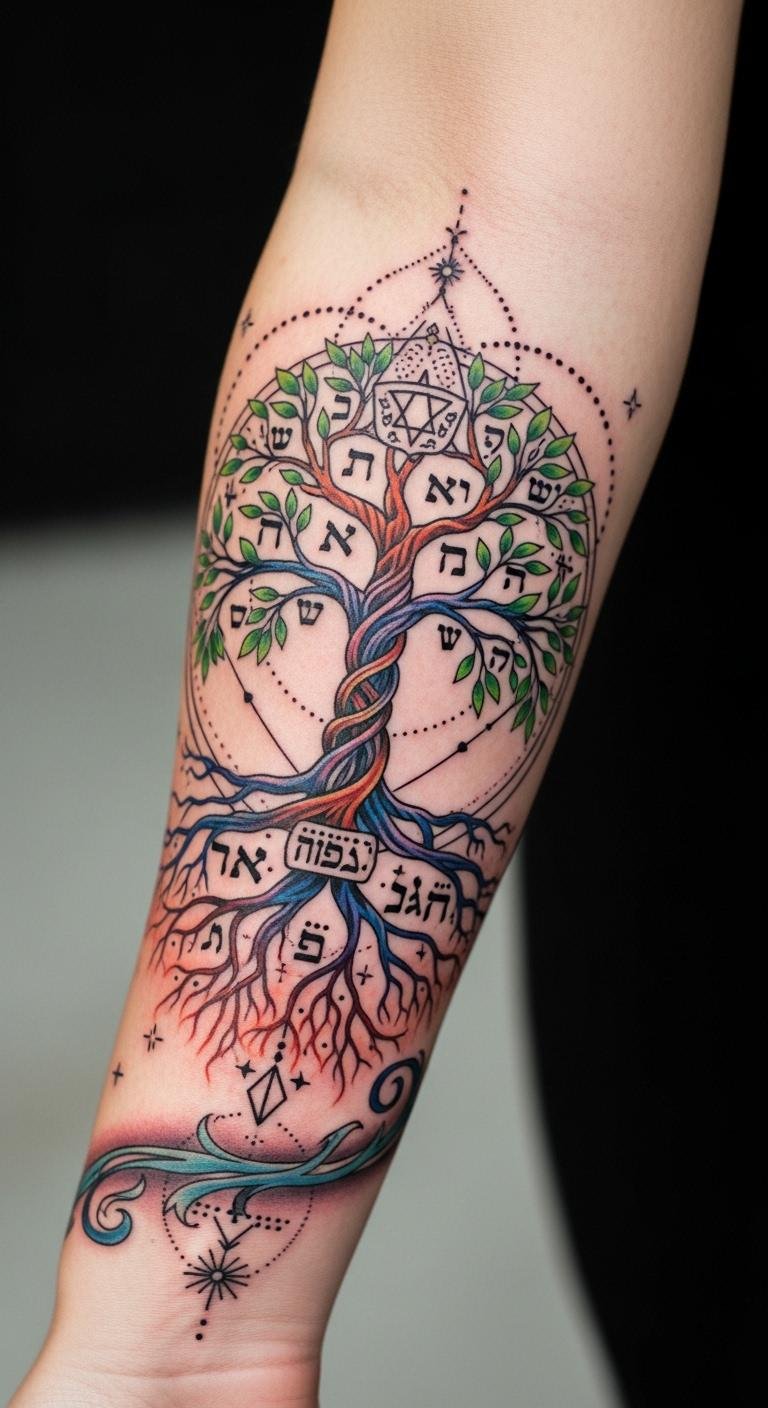 Positioned on the forearm, this tattoo serves as a constant reminder of one’s identity and spiritual path, allowing for personal expression while honoring the rich tradition of Kabbalistic symbolism.