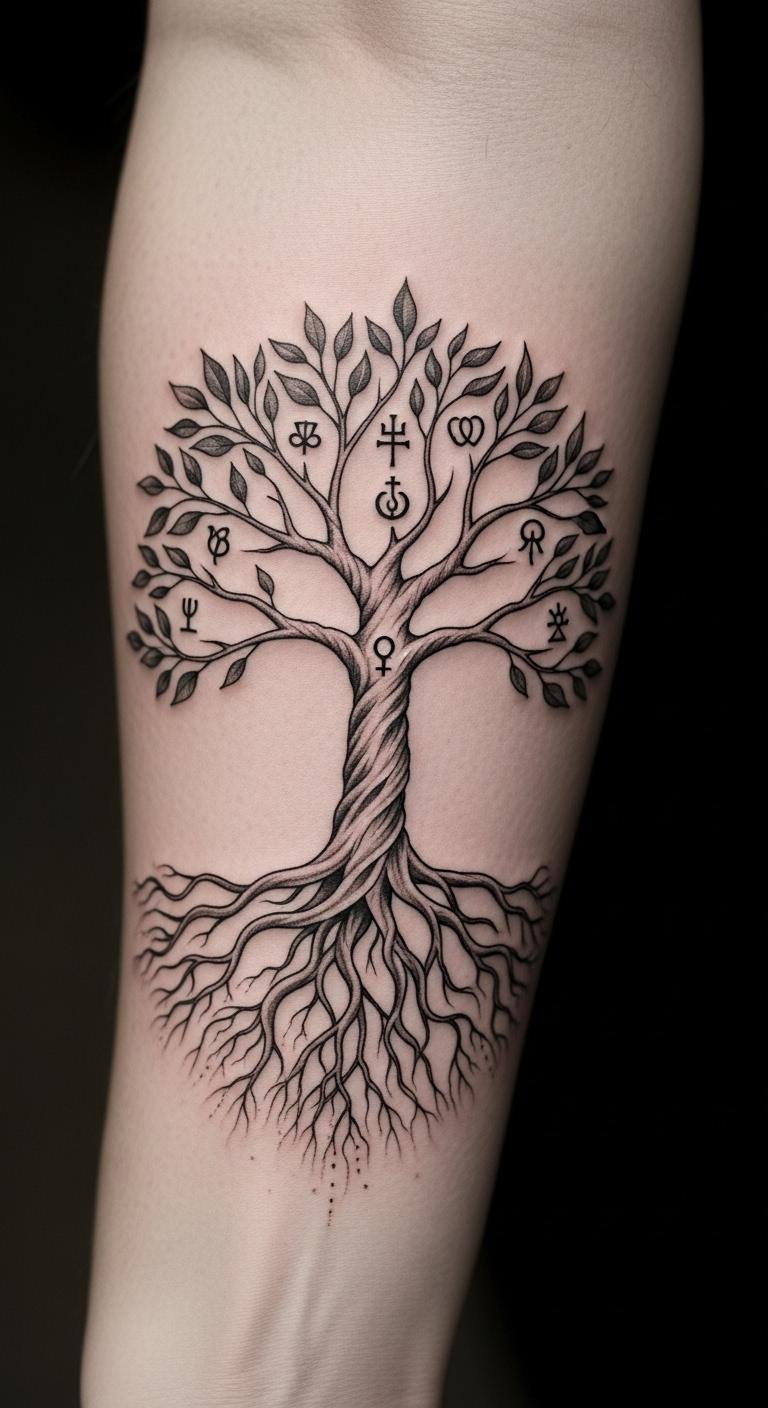 This tree tattoo serves as a powerful emblem of personal growth and adaptability, perfectly suited for the forearm where it can be easily seen and appreciated.
