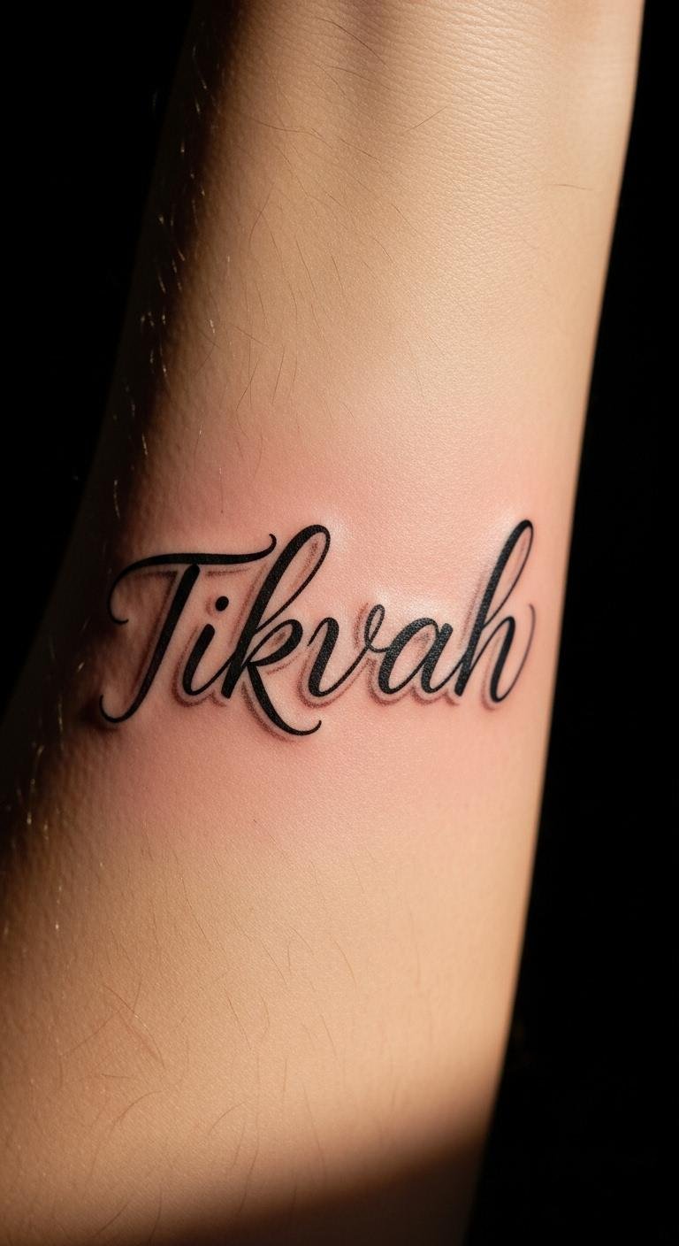 Embracing “Tikvah” as your tattoo symbolizes hope, serving as a powerful reminder to look beyond current circumstances.