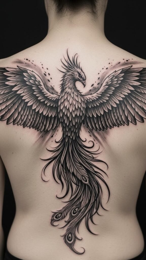 This tattoo design represents the powerful journey of transformation and the strength to rise above adversity.