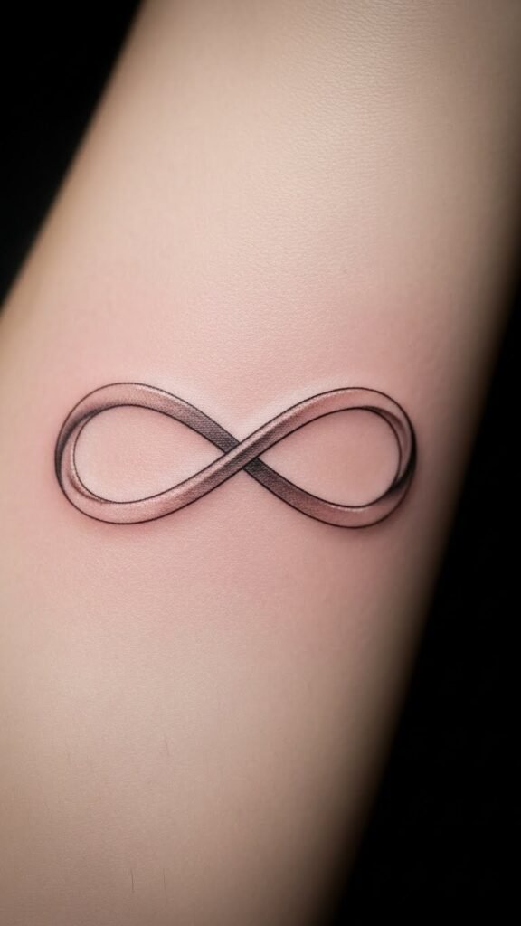 The placement on the inner forearm makes the tattoo easily visible, serving as a daily reminder of endless confidence and resilience.