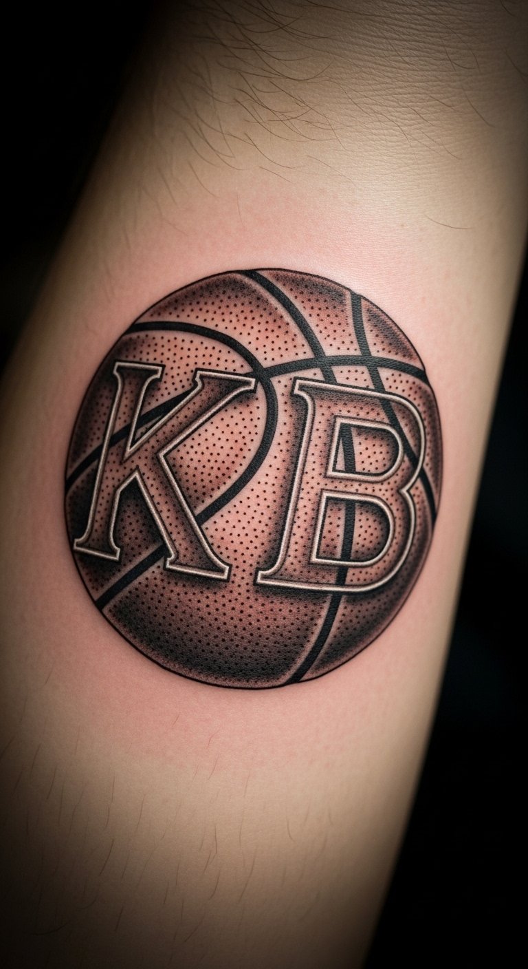 This tattoo symbolizes the deep connection between Kobe Bryant’s legacy and the sport of basketball. The initials “KB” are a tribute to his remarkable journey, while the basketball element signifies his passion and dedication to the game.