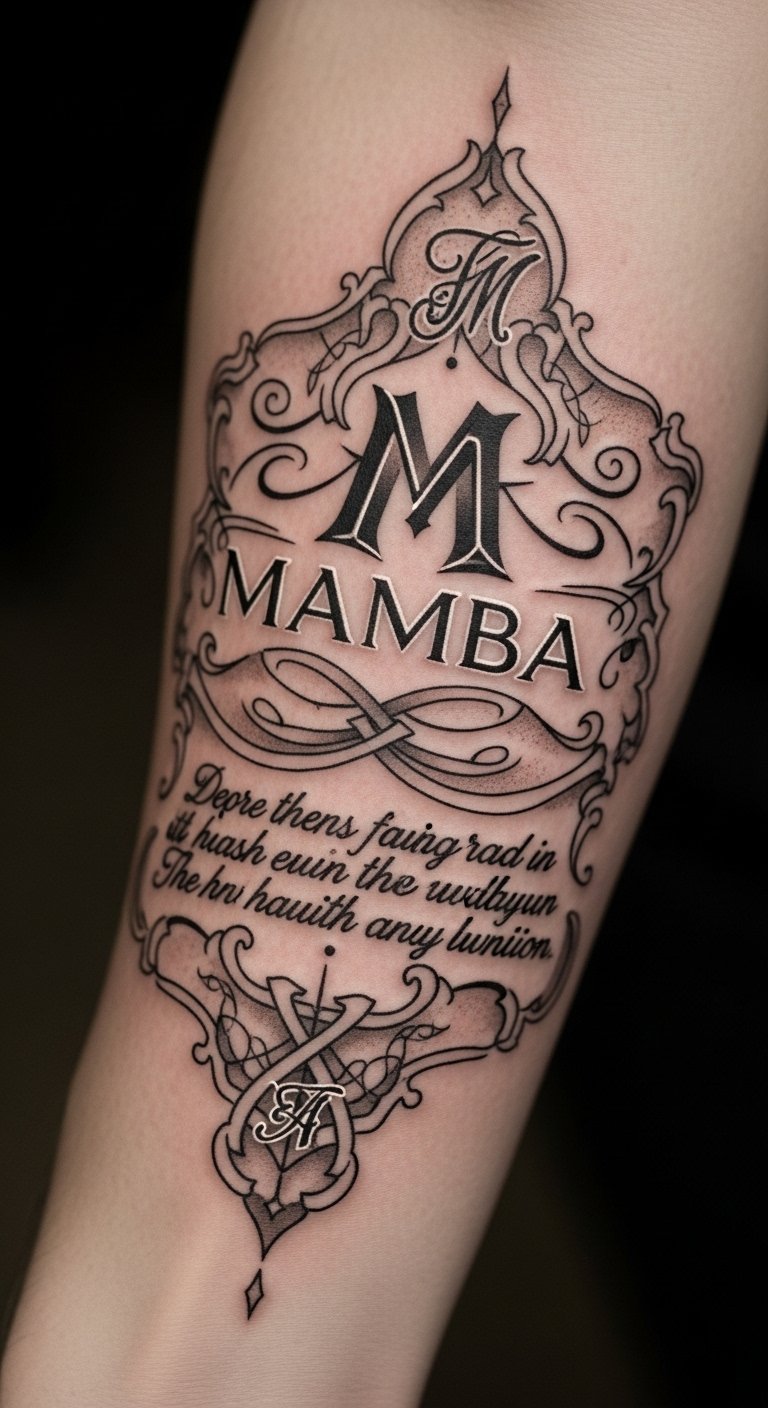 The personalized elements, such as initials and a powerful quote, add depth and individuality, transforming the Mamba logo into a unique tribute that honors both the iconic athlete and the wearer’s own story.