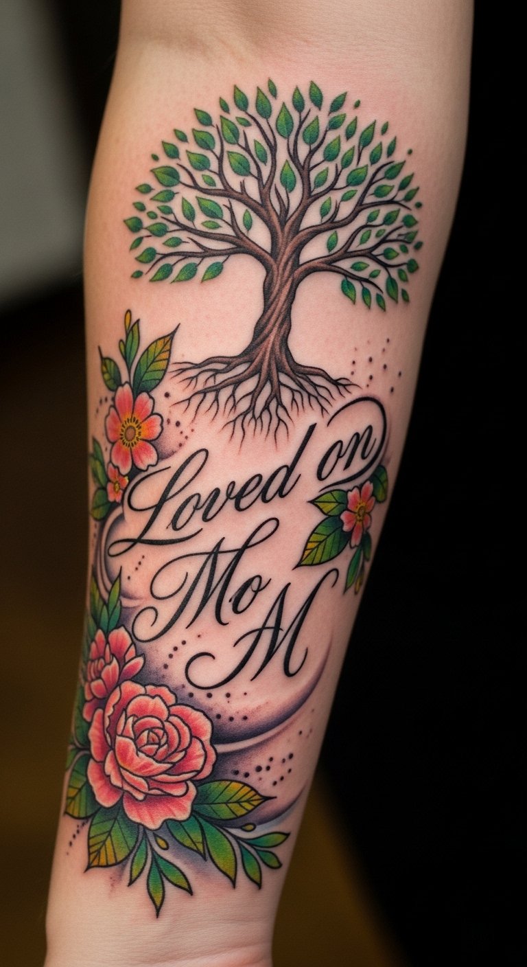 Positioned on the inner forearm, this design remains visible, allowing for a daily reminder of their deep emotional connection and family commitment, embodying their legacy in a meaningful way.