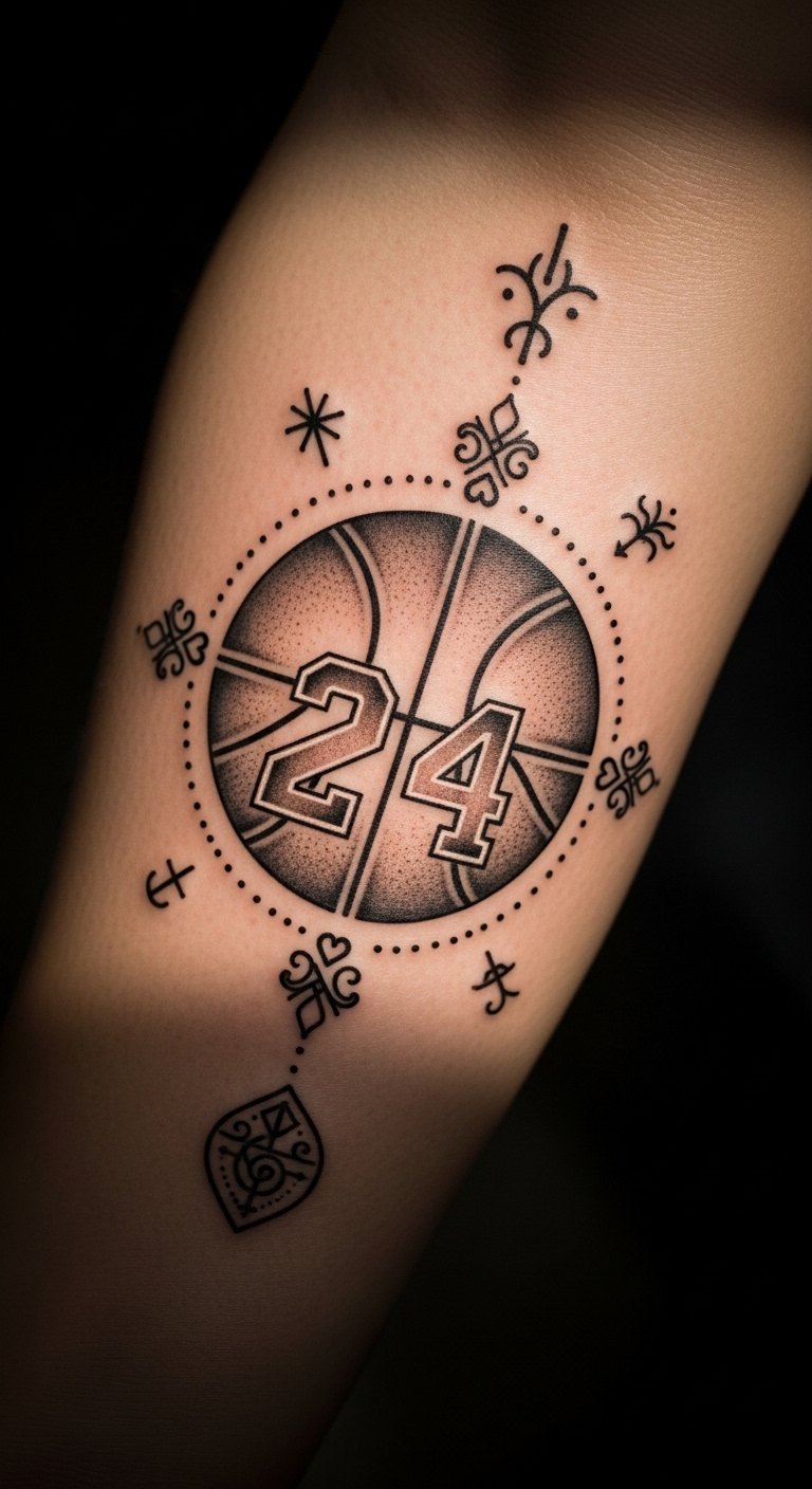 The number 24 serves as a powerful reminder of his dedication and achievements, while the basketball symbolizes his impact on the sport.