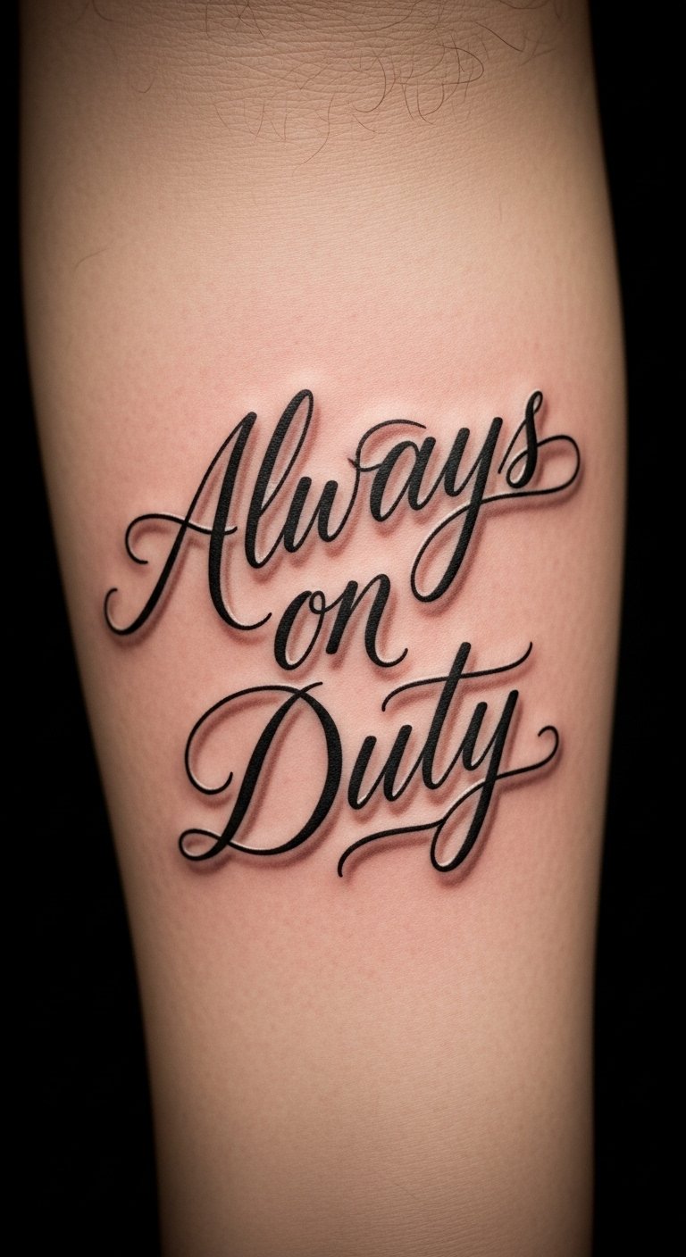 The flowing script embodies compassion and care, while the phrase itself resonates with the emotional sacrifices made in the profession, making it not just a tattoo, but a badge of honor and dedication.