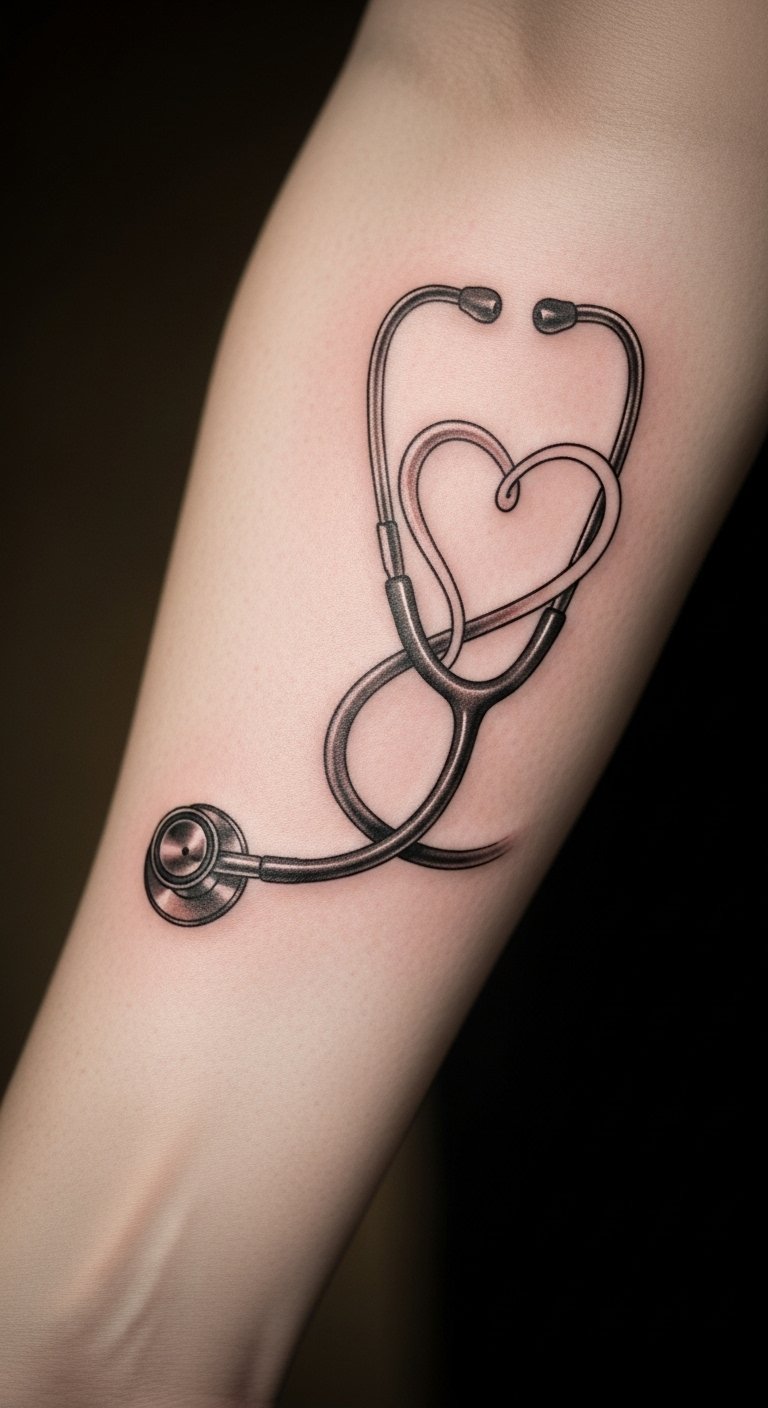 This tattoo symbolizes the deep connection between healing and compassion that nurses embody in their profession. The stethoscope represents medical expertise and care, while the heart symbolizes love and empathy. Placed on the forearm, the design is easily visible, allowing the nurse to showcase their dedication to their calling and serve as a conversation starter about the importance of compassion in healthcare.