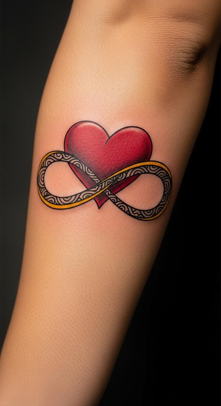 This tattoo concept embodies love and unity through the heart and infinity combination, representing everlasting connections.