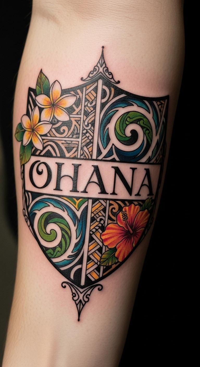 Embracing the essence of Ohana tattoos, this design represents the strength and depth of familial connections. The ocean symbolizes life’s ebb and flow, while the mountains embody stability and resilience.