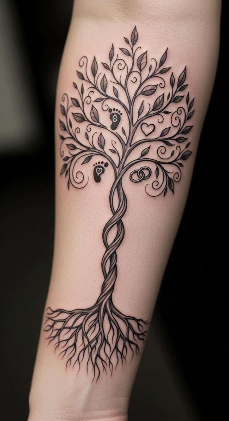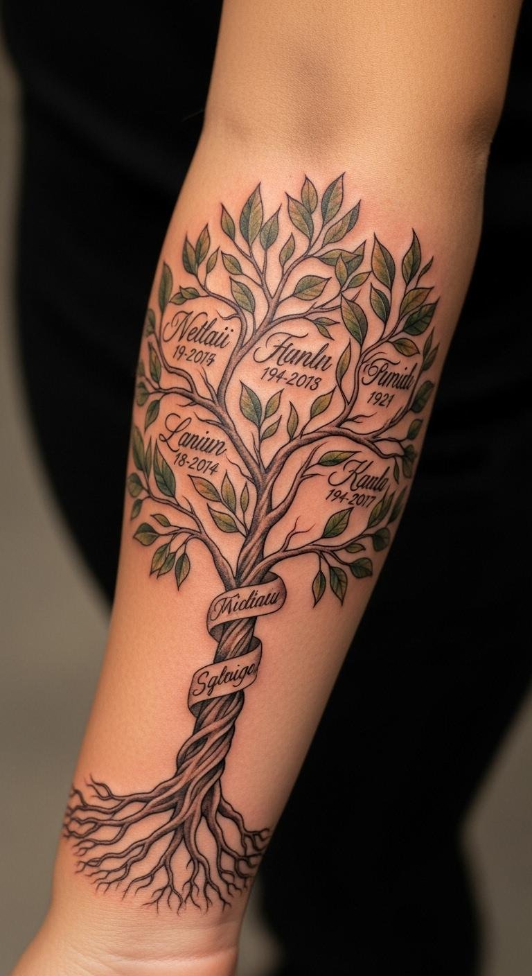 This family tree tattoo on the forearm symbolizes the deep connections that span generations, allowing for personal stories to be shared visually.