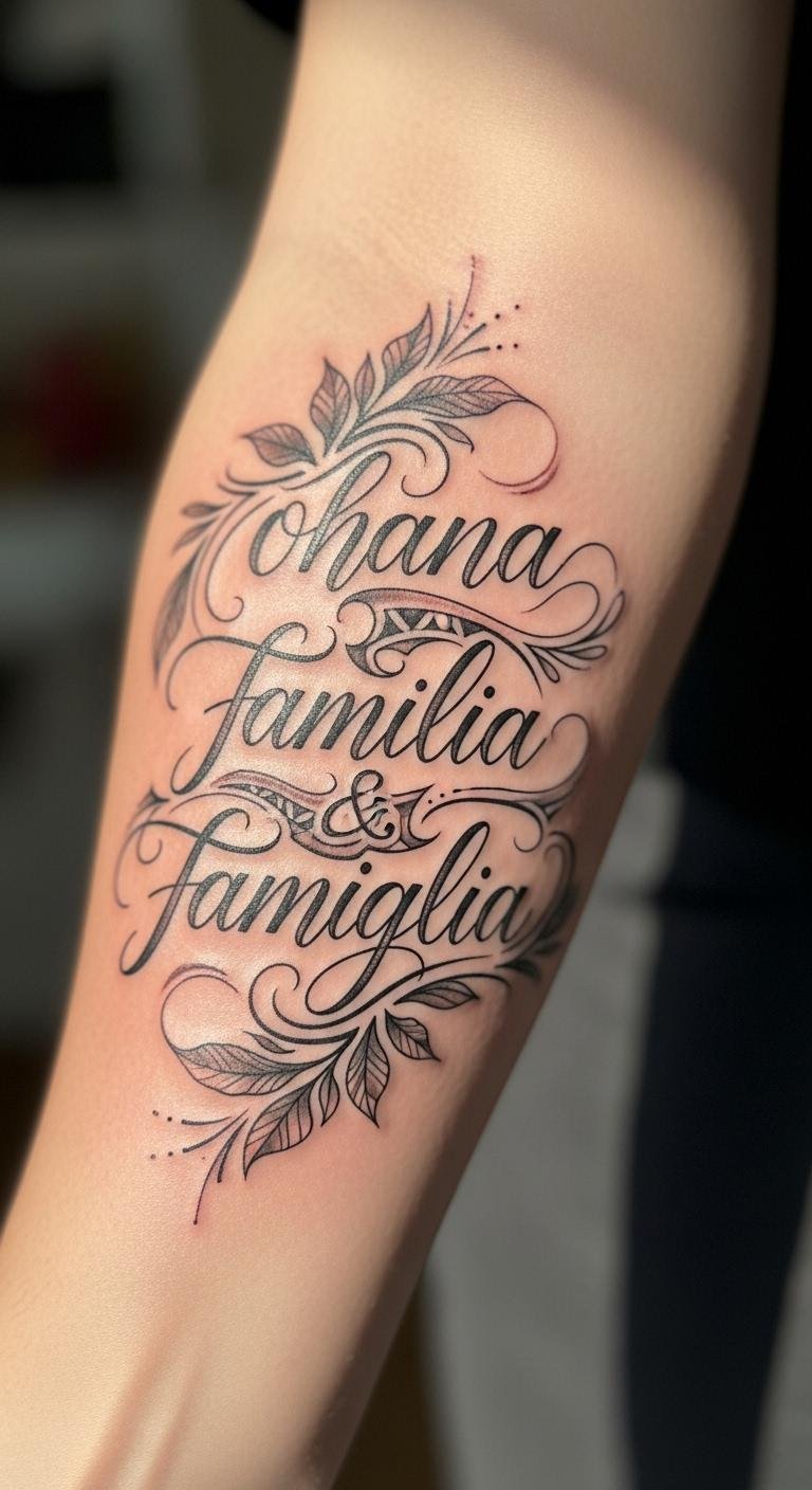 Positioned on the forearm, this tattoo isn’t only a personal expression of family ties but also allows for easy visibility and sharing of one’s story with others.