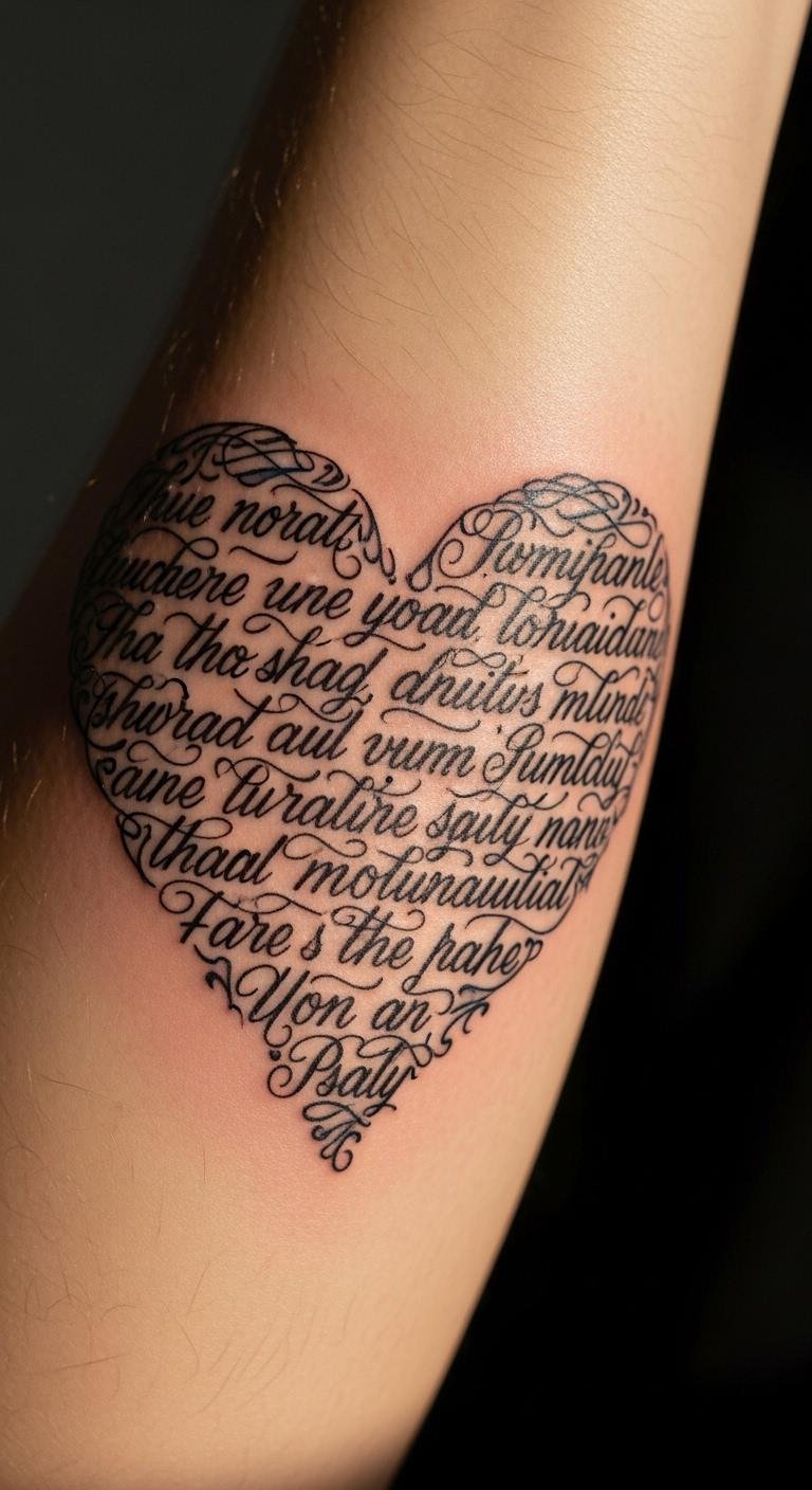 Love and faith intertwine beautifully in this heart-shaped tattoo, symbolizing deep devotion and spiritual connection.